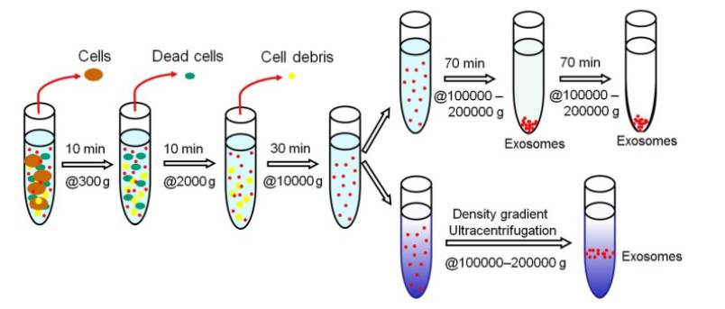低轉速離心,去除細胞或其他大顆粒雜質(zhì),然后超速離心沉降外泌體。