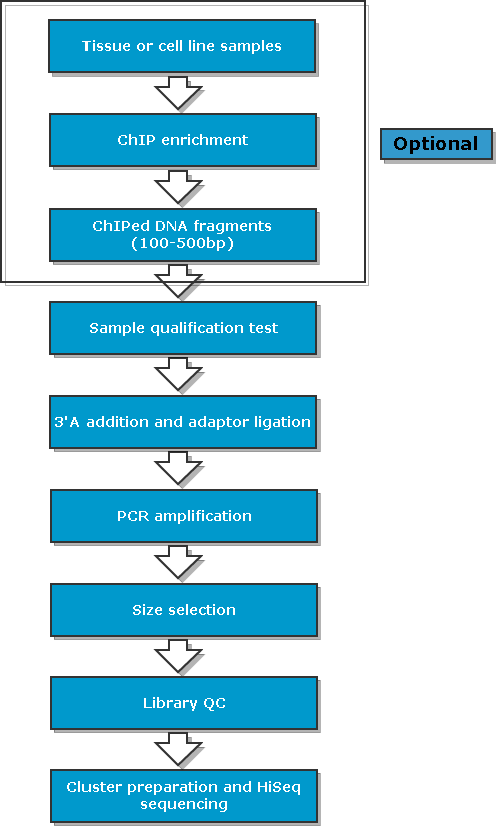 染色體免疫共沉淀(ChIP)是一種用于研究蛋白質(zhì)與 DNA 的體內相互作用的經(jīng)典實(shí)驗技術(shù)。采用特異性抗體將目的蛋白進(jìn)行免疫沉淀,由此可以把目的蛋白所結合的基因組 DNA 片段也富集下來(lái)。通過(guò)與高通量測序技術(shù)的結合,對 ChIP 后的DNA 產(chǎn)物進(jìn)行測序分析, 從全基因組范圍內尋找目的蛋白的 DNA 結合位點(diǎn),以高效率的測序手段得到高通量的數據結果。