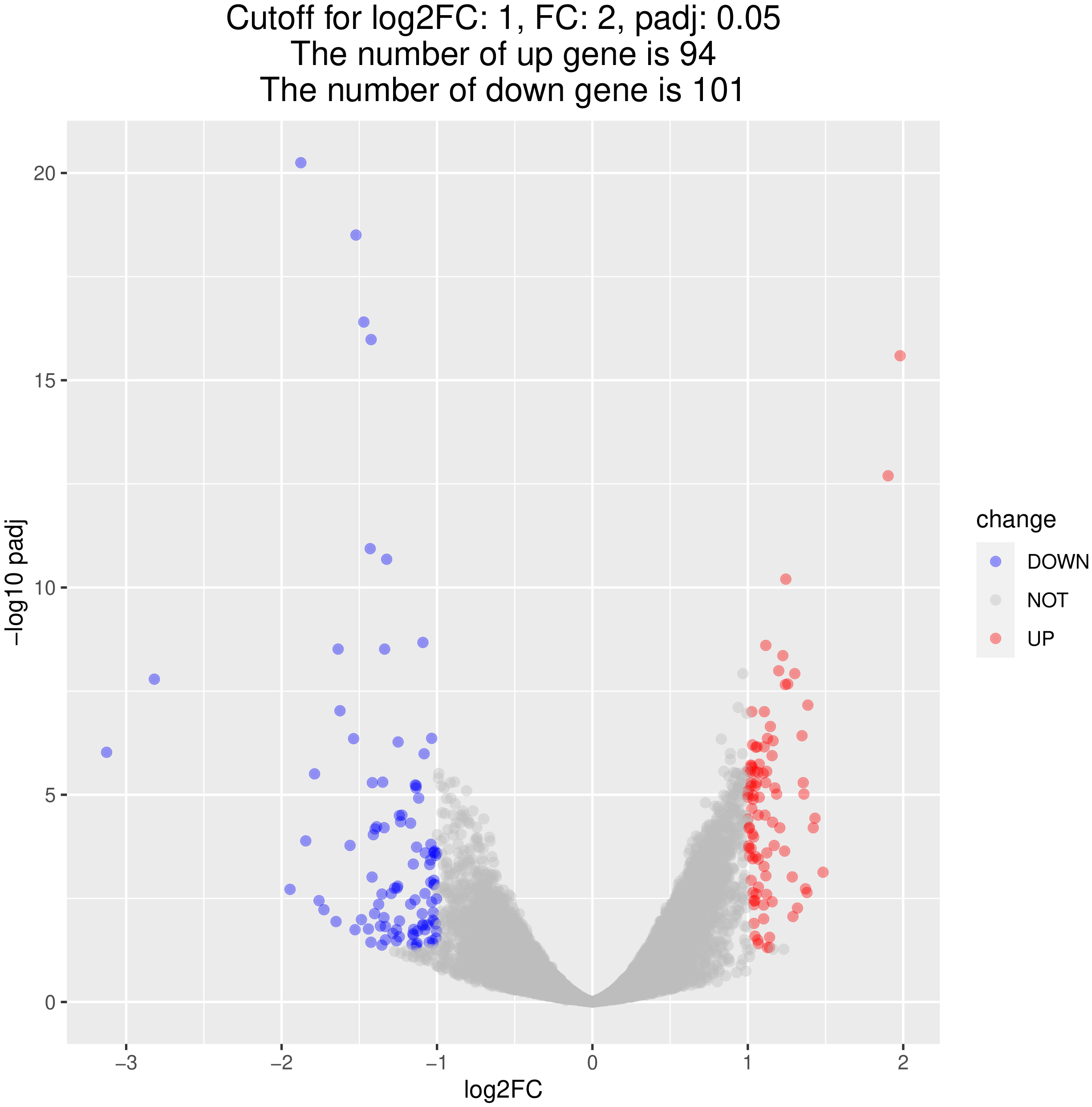 change | 使用本次分析的閾值,對差異基因的上下調標記 |