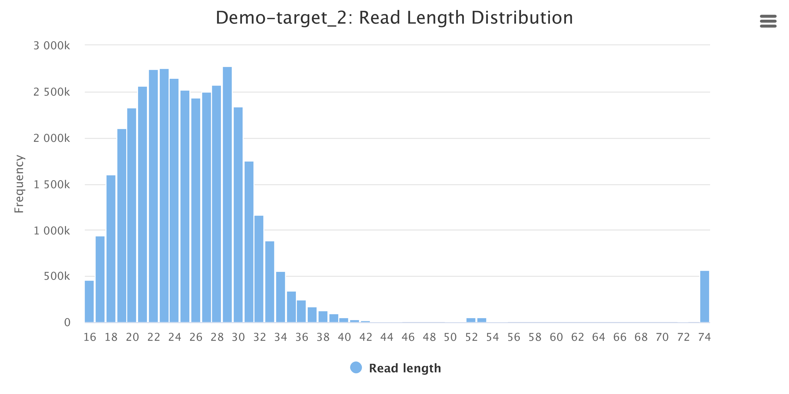 ??一般來(lái)說(shuō),小RNA的長(cháng)度區間為18~30nt,數據過(guò)濾完成后,我們統計了clean reads數目及各自占總reads的百分比,并繪制reads長(cháng)度分布圖。reads長(cháng)度分布圖能幫助我們判斷小RNA的種類(lèi),如miRNA集中在21或22nt,siRNA集中在24nt,piRNA集中在30nt。