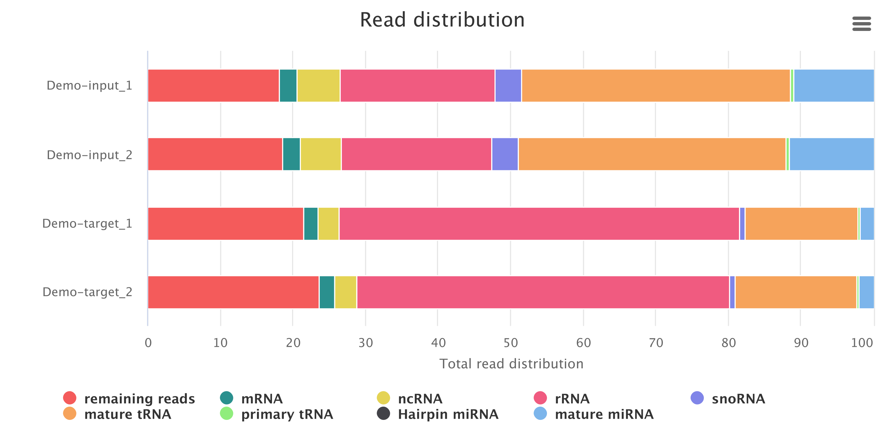 圖顯示的是各類(lèi)型的RNA reads和miRNA reads占總distinct reads的比例。
