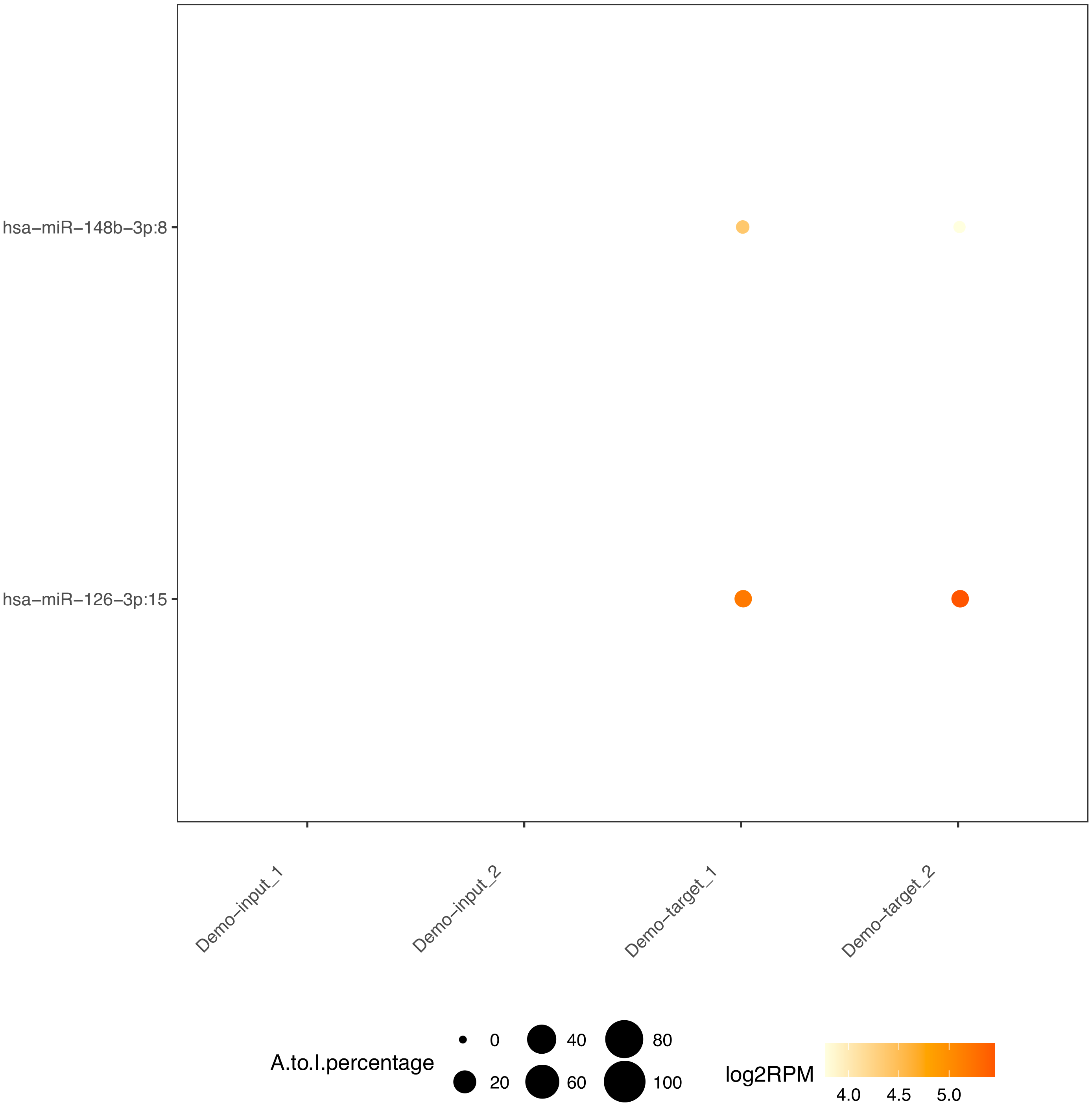 ( 即匯總表的*.RPM.mismatch、*.AtoI.percentage列,該表對應上面的可視化結果 )表頭 說(shuō)明 miRNA:positionmiRNA和position位置信息 sample樣本名 A-to-I percentageA2I檢測的序列readCount占比,對應第一個(gè)表中的 Sample.AtoI.percentagelog2RPMA2I檢測的序列readCount總和的log2RPM值,對應第一個(gè)表中的A2I檢測的序列